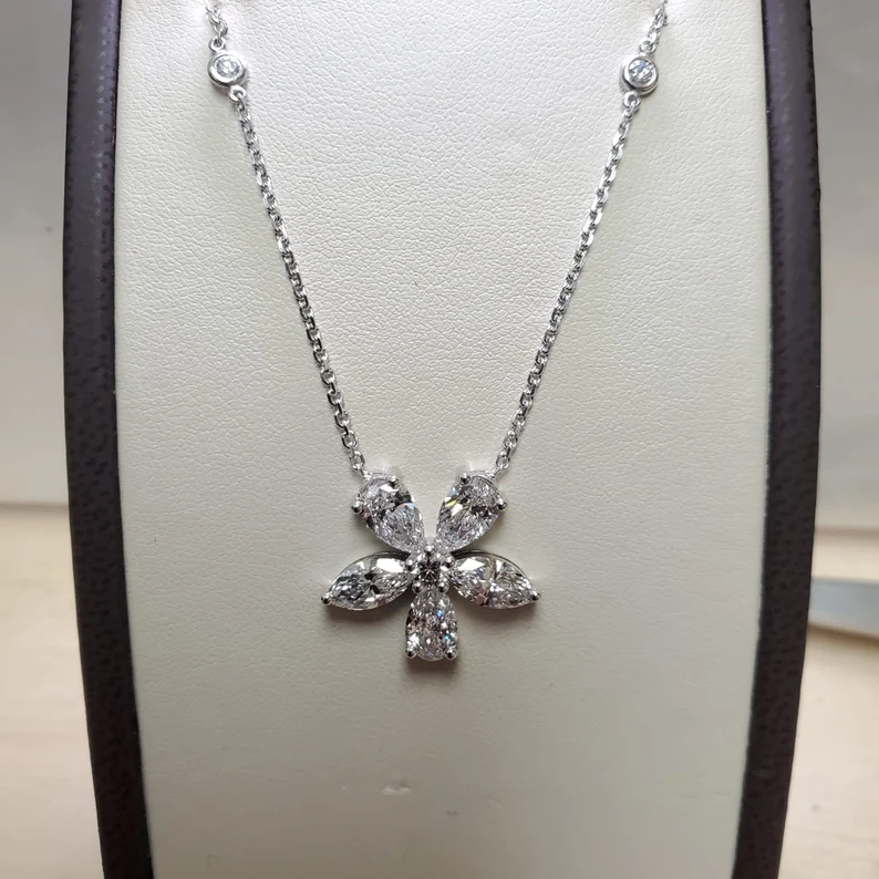 4 Carat Pearshape Marqui Flower Pendant With Diamond By The Yard CVD Lab Grown Handmade Custom Gift Holidays Wedding Anniversary Birthday