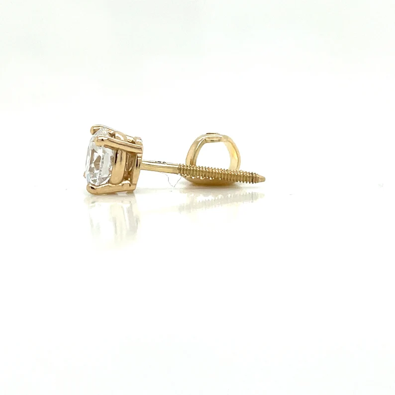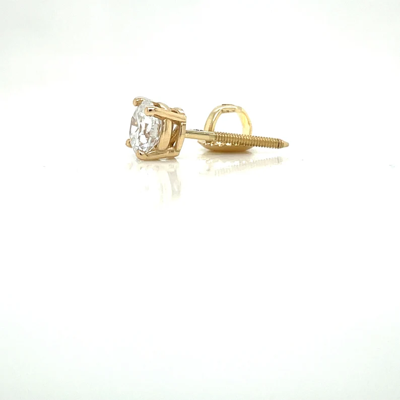 This 1.10ctw lab-grown E F VVS IGI Certified pair of studs set in a solid 14kt gold 4 prong basket earring. This piece of jewelry was handcrafted and is suitable for any occasion. Whether it be a wedding, anniversary, birthday, or just a beautiful gift. These studs are made to last and are coupled with a beautiful jewelry box.