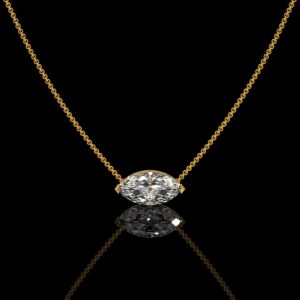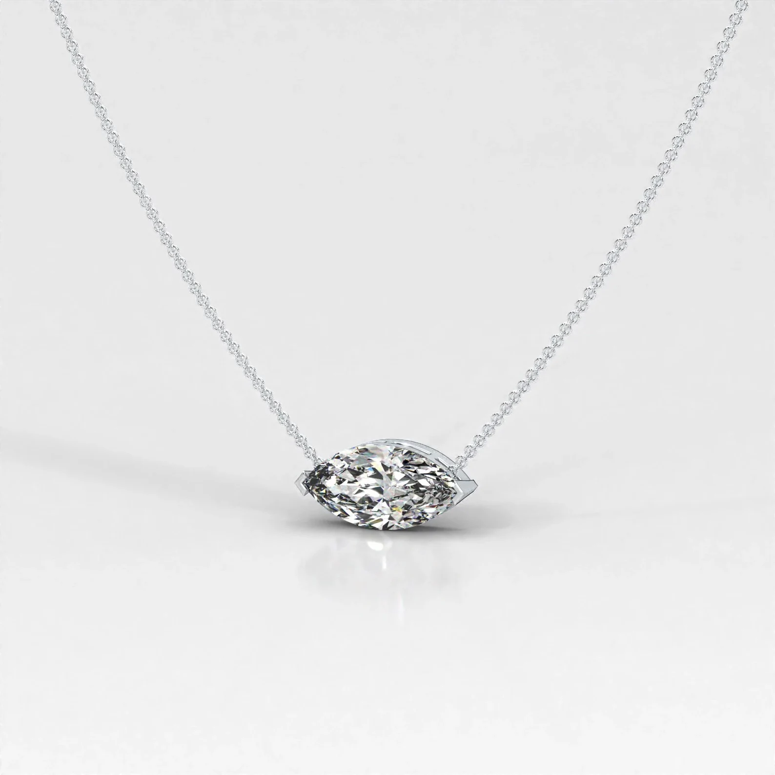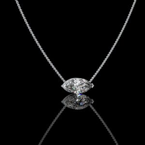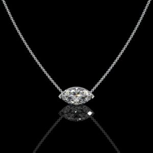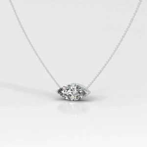 This is a 1-5 ctw lab-grown Marquise Sideways E in color and VS1 in clarity diamond v prong set pendant. This piece of jewelry was handcrafted and is suitable for any occasion. Whether it be a wedding, anniversary, birthday, or just a beautiful gift. This pendant is made to last and comes with a beautiful jewelry box.
